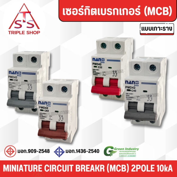 NANO เซอร์กิตเบรกเกอร์ แบบเกาะราง NANO PLUS 2P 10kA รุ่น PMD42C