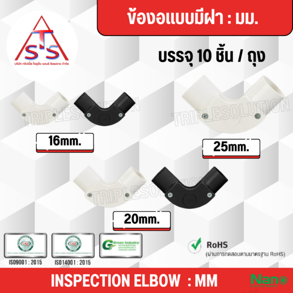 NANO ข้องอเเบบมีฝาสีดำ ข้องอเเบบมีฝาสีขาว (มิล) จำนวน 10 ชิ้น / ยกกล่อง